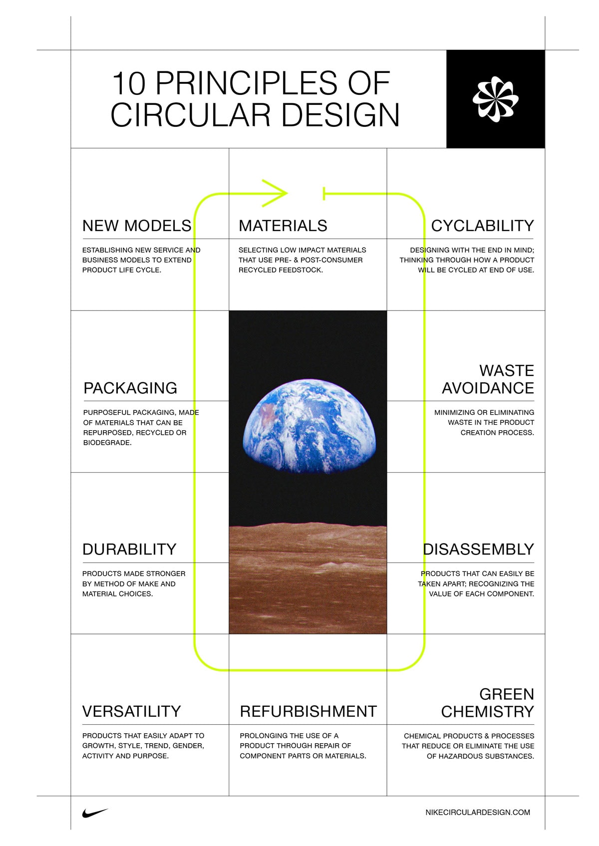 Und es hört nicht nur innerhalb des Unternehmens auf. Die Modebranche ist, wie viele andere auch, bei weitem nicht mehr so siloisiert wie früher. Gordon-Smith betonte auch die Bedeutung der Kommunikation zwischen Unternehmen und Wettbewerbern in ihren jeweiligen Branchen, um sich gegenseitig zu ermutigen und zu drängen, immer höhere Nachhaltigkeitsstandards zu erfüllen. Letzten Monat hat Nike genau das getan. Der Sportriese veröffentlichte seinen Circular Design Guide - einen Open-Source-Leitfaden, der anderen Unternehmen, einschließlich seiner Wettbewerber, helfen soll, Annahmen in jeder Phase des Designprozesses zu hinterfragen und sie zu ermutigen, ihre Nachhaltigkeitsziele zu erreichen. Der 10-Punkte-Leitfaden beschreibt die wichtigsten Prinzipien des kreisförmigen Designs entlang der gesamten Lieferkette.