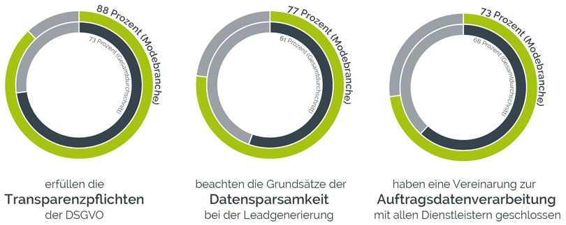 Die wohl größte Herausforderung bleibt das DSGVO-konforme Profiling. 62 Prozent der Mode-Unternehmen haben ihr Profiling anhand der neuen DSGVO-Richtlinien angepasst. Immerhin wesentlich mehr als die Auswertung aller befragten Unternehmen ergeben hat, die nur auf 42 Prozent kommt. Selbst im Handel, wo das Erstellen von Nutzerprofilen oder Buyer-Personas gang und gäbe ist, erfüllen nur 55 Prozent die Anforderungen der DSGVO.