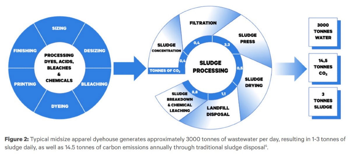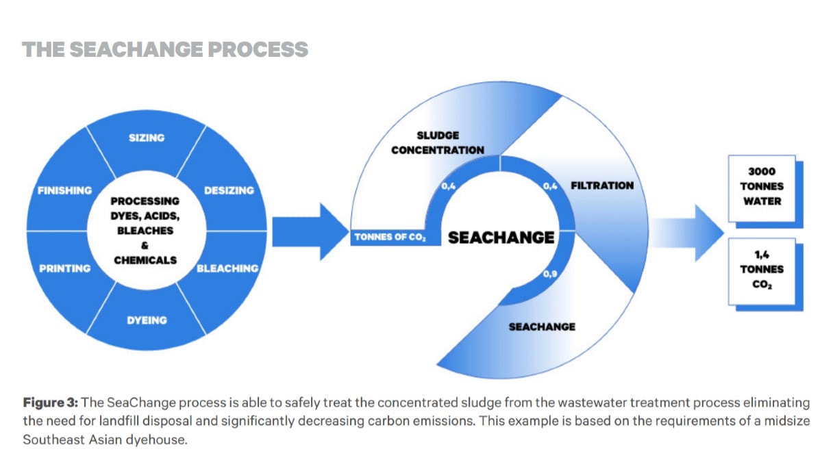 Angesichts der Tatsache, dass in einer typischen Färberei täglich ein bis drei Tonnen Klärschlamm aus der Abwasserbehandlung anfallen, sind die entstehenden Kosten zur Schlammentsorgung enorm - jährlich über 200.000 US-Dollar (rund 168.000 Euro). Diese Menge erzeugt auch über 5.000 Tonnen Treibhausgase pro Jahr. „Durch die Implementierung des SeaChange-Systems in ihrer Kläranlage werden diese Kosten sowie die damit verbundenen Umweltauswirkungen wirksam beseitigt“, bestätigt SeaChange.