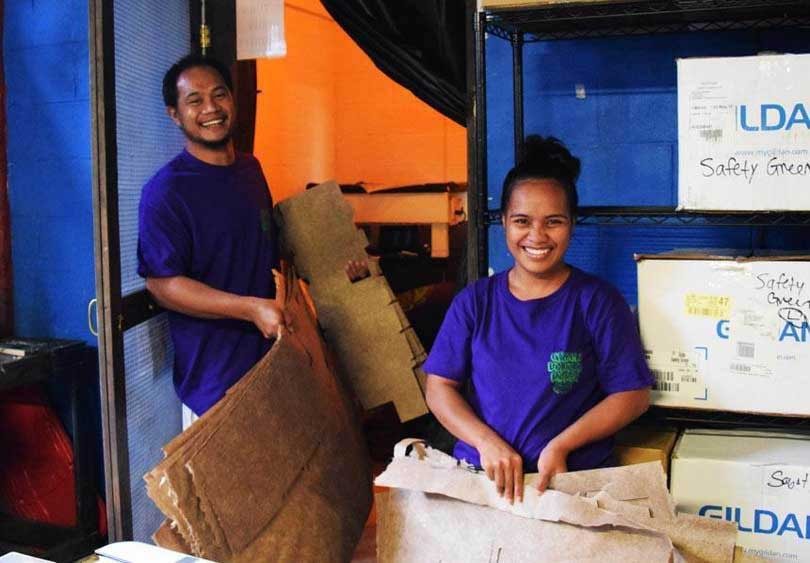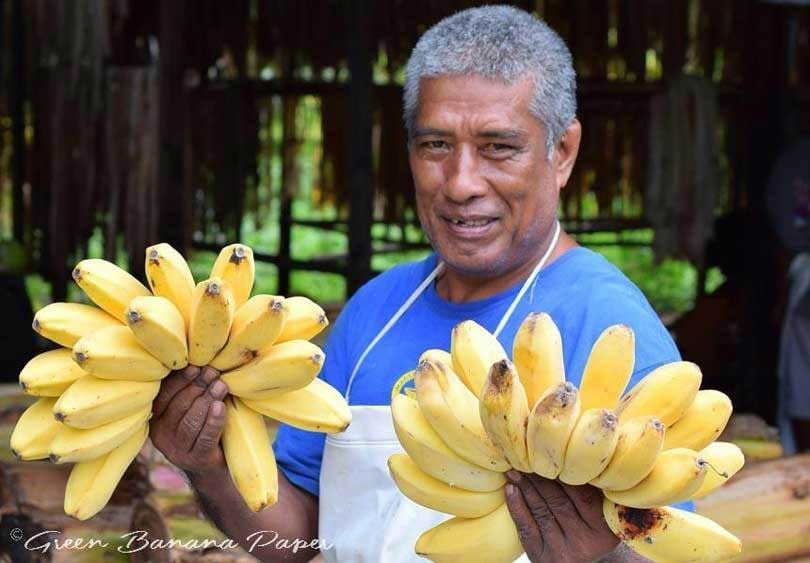 “Unsere Fasern kommen aus den Gärten der Subsistenzwirtschaft der Bauern aller Dörfer von Kosrae”, erklärt Simpson gegenüber FashionUnited. “Die Stämme würden sonst weggeschmissen, da Bananenstauden nur einmal pro Zyklus Früchte tragen und entfernt werden, um Platz für neue Ableger zu schaffen, die aus demselben Wurzelsystem wachsen. Die Fasern geben sehr starkes Papier, das geeignet ist, nicht-biologisch abbaubare oder tierische Materialien in bestimmten Industrien und der Modebranche zu ersetzen.” Laut Green Banana Paper sind Bananenfasern sind nicht nur von Natur aus wasserfest, sondern auch sehr feuerbeständig, reißfest und recycelbar. Um ihre Produkte noch haltbarer zu machen, versiegelt das Unternehmen das Papier mit einer dünnen Wachsschicht.