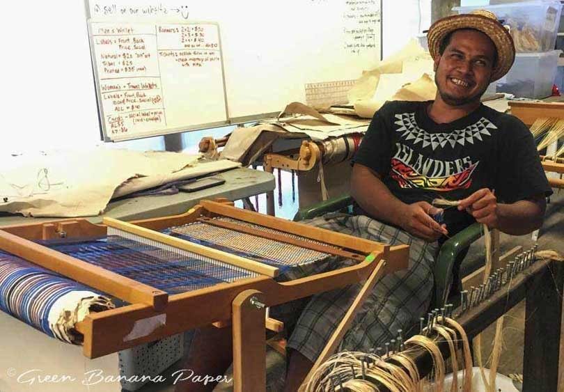 Green Banana Paper verwendet das Bananenpapier, um Brieftaschen zu machen und verwebt die rohen Bananenfasern zu handgewebte Artikeln wie Geldbörsen und Laptop-Taschen. Während Green Banana Paper Chemikalien so weit wie möglich vermeidet, ist Simpson sich der Möglichkeiten bewusst, mehr natürliche Farbstoffe zu verwenden. “Wir ziehen es vor, den Einsatz von Chemikalien so weit wie möglich zu vermeiden, aber wir haben natürliche Farbstoffe wie Indigo definitiv im Blick, um Variationen und faszinierende Designs zu schaffen.”