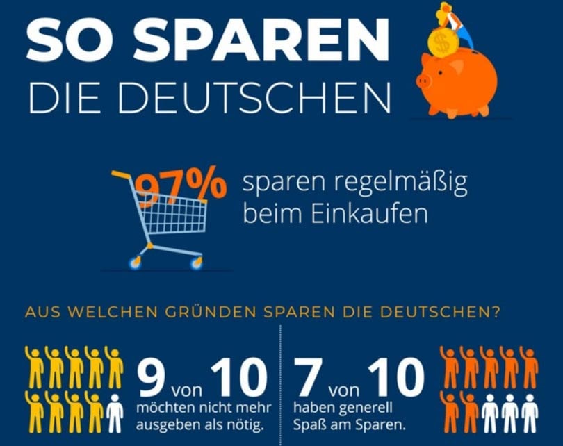 „Die Deutschen sparen nicht nur, um sich einen schönen Urlaub, ein neues Auto oder eine Immobilie leisten zu können, sondern vor allem aus Prinzip. Neun von zehn Befragten geben an, nicht mehr ausgeben zu wollen als nötig. Und ganze 72 Prozent haben sogar Spaß am Sparen. Sparsamkeit und Preisbewusstsein sind in Deutschland offenbar weit verbreitet - und zwar keineswegs nur in Schwaben“, so die Untersuchung.
