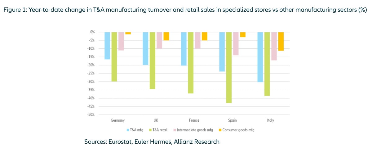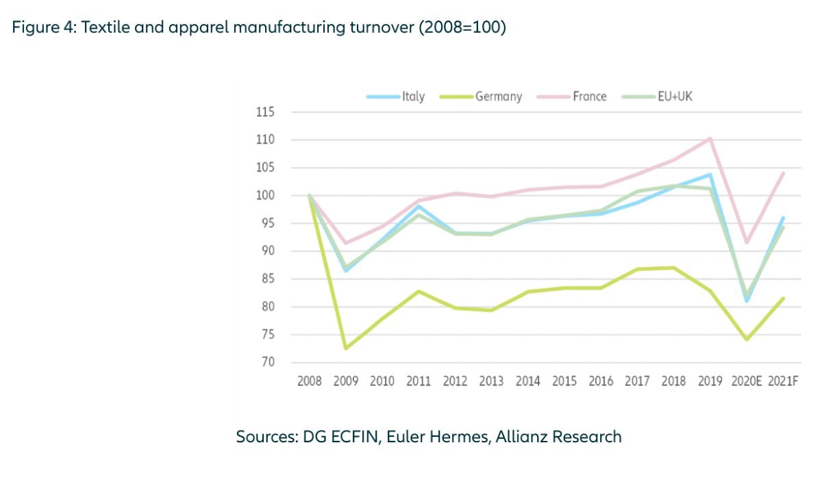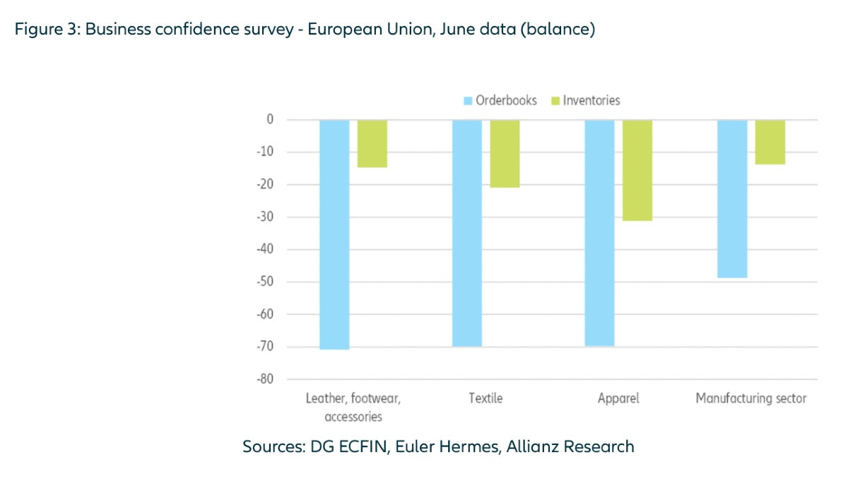 Während technische Textilien - zum Beispiel solche, die in der Luft- und Raumfahrt verwendet werden - zwar vom Einbruch betroffen sind, ist es die auf Konsumausgaben und Verbrauchervertrauen angewiese Modebranche, die am stärksten betroffen ist. „Betrachtet man den Bekleidungseinzelhandel, so ist er derzeit am stärksten betroffen. Wir sehen keinen starken Aufschwung wie etwa bei anderen Produkten wie Möbeln, Computern und Smartphones“, bestätigt Duthoit nach Prüfung der jüngsten Daten.
