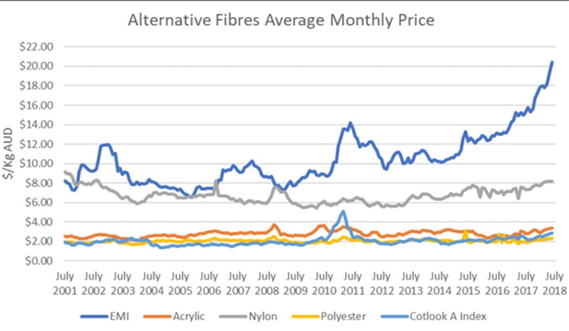 China ist der größter Abnehmer von australischer Wolle und allein der chinesische Markt für Sportbekleidung soll sich zwischen 2015 und 2020 verdoppeln, erwartet eine Studie der australischen Rural Bank. Die Wollproduktion in China wird laut Prognosen mittelfristig auch anziehen und den Anstieg der Wollpreise deckeln. Derzeit bewegen sich die Benchmark-Preise weiterhin auf Rekordniveau, obwohl der Eastern Market Indicator auf 20,67 Australische Dollar pro Kilogramm in der vergangenen Woche gefallen ist, wie ein wöchentlicher Marktbericht von Australian Wool Innovation Limited zeigt.
