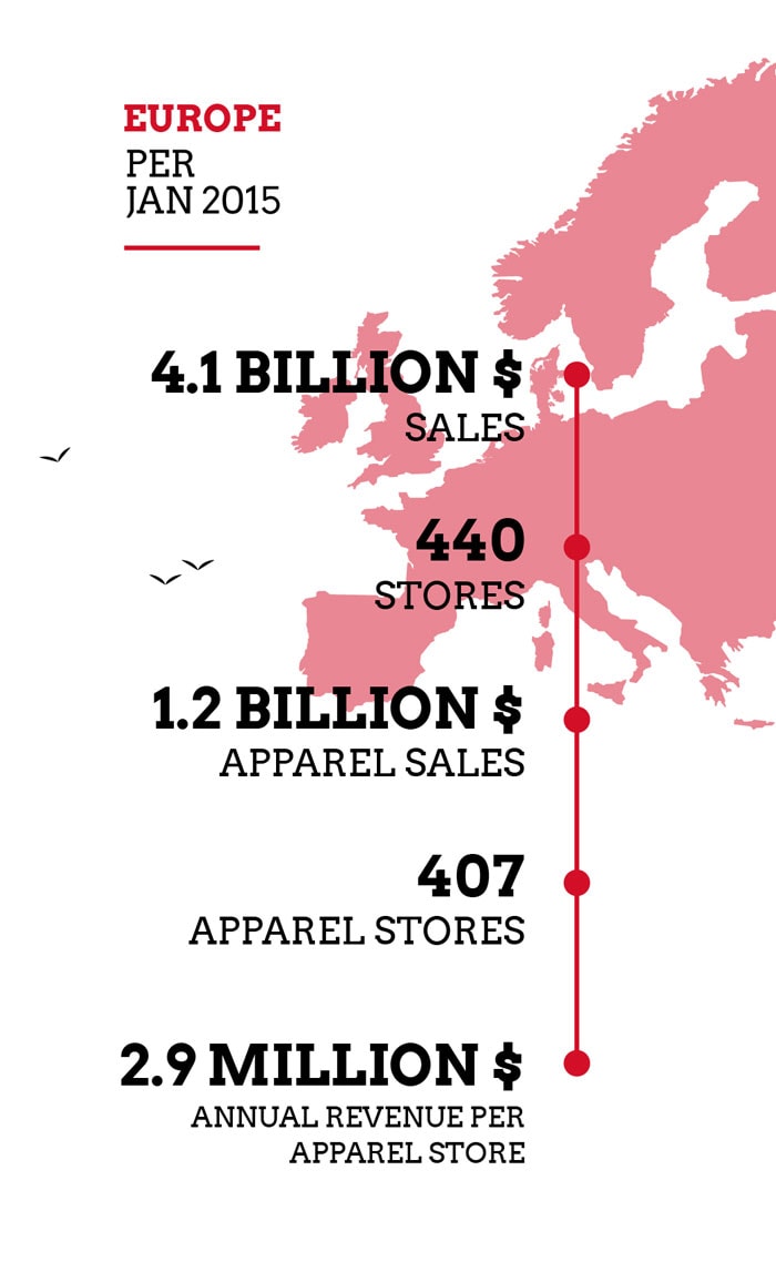 Ein Bereich allerdings von TJX Companies, der bemerkenswerten Spielraum für Wachstum gezeigt hat, ist TJX Europe, der Auslandsarm des US-amerikanischen Unternehmens. Mit einem durchschnittlichen Jahreswachstum von 13,2 Prozent konnte TJX Europe seinen Umsatz von 2,5 Milliarden US-Dollar im Jahr 2011 auf 4,1 Milliarden US-Dollar im Januar 2015 steigern. Darüberhinaus verzeichneten die europäischen Filialen von TJX Companies die beste Entwicklung in Bezug auf das Wachstum des Jahresumsatzes pro Laden, wobei er von 2011 bis 2015 dank der einzigartigen Kombination aus Bekleidung, Haushaltswaren und Accessoires um 24 Prozent auf 9,3 Millionen US-Dollar anstieg.