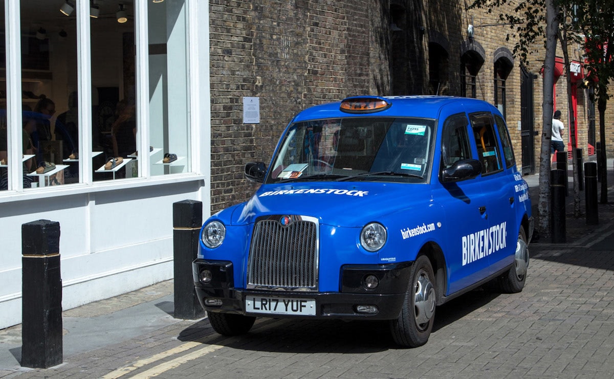 Den Anfang machte eine Filiale im Einkaufszentrum Westfield Shopping Center. Kurz darauf folgte ein Store im Zentrum: Im Stadtteil Soho bezog Birkenstock Räumlichkeiten in der Carnaby Street 42. In beiden Geschäften kam nach Angaben des Unternehmens ein „leicht überarbeitetes Store-Konzept“ zum Einsatz, das durch die Verwendung von Materialien wie Jute, Kork, Leder und Filz „die ideale Balance zwischen Mensch und Natur sowie zwischen Ruhe und Aktivität“ verkörpern soll. Begleitet wurden die Neueröffnungen durch eine gezielte Kampagne im Londoner Stadtgebiet. So setzte Birkenstock fünfzig eigens gestaltete Taxis und mehrere Linienbusse als Werbeträger ein.