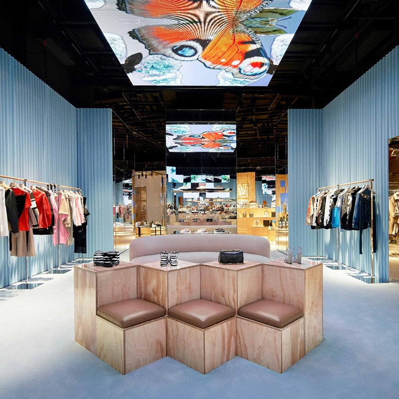 Der 5.800 Quadratmeter große Laden ist in zehn Räume aufgeteilt, in denen die Kunden persönlich oder über soziale Medien Informationen und Interaktionen austauschen können. Durch ein spezielles WeChat-Miniprogramm, das im Rahmen einer exklusiven Partnerschaft mit Tencent entwickelt wurde, können die Kunden beim Erkunden des Geschäfts in einer „sozialen Währung“ Punkte verdienen, mit denen sie auf exklusive Inhalte und personalisierte Erfahrungen zugreifen können. Jeder Kunde erhält einen digitalen Tiercharakter, der sich im Laufe seiner Erfahrungen im Geschäft weiterentwickelt.