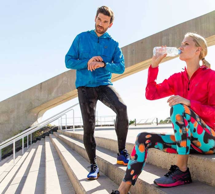 Abseits des klassischen Handels schaffen sich die Sportartikler mit komplett eigenen Läden und ihren Online-Shops einen zusätzlichen Absatzkanal - und die große Bühne zur Selbstdarstellung. In die eigenen Läden kommen die Star-Designer zur Vorstellung eines neuen Schuhs, das Store-Design ist bei Nike komplett auf sein Logo, den "Swoosh", bei Adidas ganz auf die Drei-Streifen-Optik ausgelegt: Kleiderstangen sehen aus wie Langhanteln, anstatt in herkömmlichen Schuhregalen werden die Schuhe auf Startblöcken präsentiert. Mega-Stores in den großen Metropolen sind Start- und Zielpunkt für Trainingsläufe und kleine Wettkämpfe zur Kundenbindung.