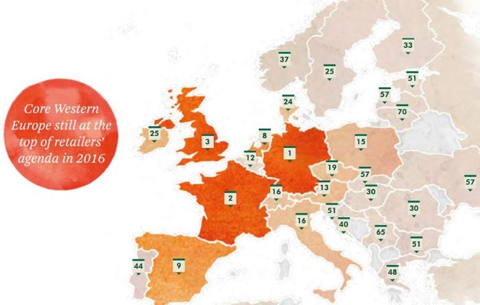 Insgesamt untersuchte der Bericht erneut die globalen Expansionsambitionen von mehr als 150 Einzelhändlern, die in drei Gebiete aufgeteilt wurden: Amerika; Europa, Naher Osten und Afrika (EMEA) sowie Asien-Pazifik (APAC). Von den befragten Einzelhändlern sagten 35 Prozent, sie würden Deutschland für ihre Expansion im Jahr 2016 auswählen; 33 Prozent sagten dies über Frankreich, 29 Prozent über Großbritannien und 27 Prozent beziehungsweise 25 Prozent über China und die USA.