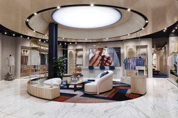 Auf der 2300 Quadratmeter großen Verkaufsfläche wird neben den Konfektionsstücken und Accessoires der Marke auch ein Service für Maßanfertigungen angeboten, der von den Maßen über die Farbe und Kragenformen bis zu Details wie Knöpfen, Taschen und Monogrammen geht.