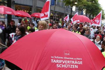 In Nordrhein-Westfalen fiel das Angebot zuletzt optisch schon etwas besser aus: Dort bieten die Arbeitgeber Erhöhungen von 2,0 und 1,8 Prozent in zwei Stufen - allerdings für sechs Nullmonate, in denen die Gehaltserhöhung verschoben wird. Verdi will hier für die Beschäftigten 5,5 Prozent mehr Geld, mindestens aber 140 Euro. Außerdem verlangt sie eine Allgemeinverbindlichkeitserklärung der Tarifverträge für die gesamte Branche.