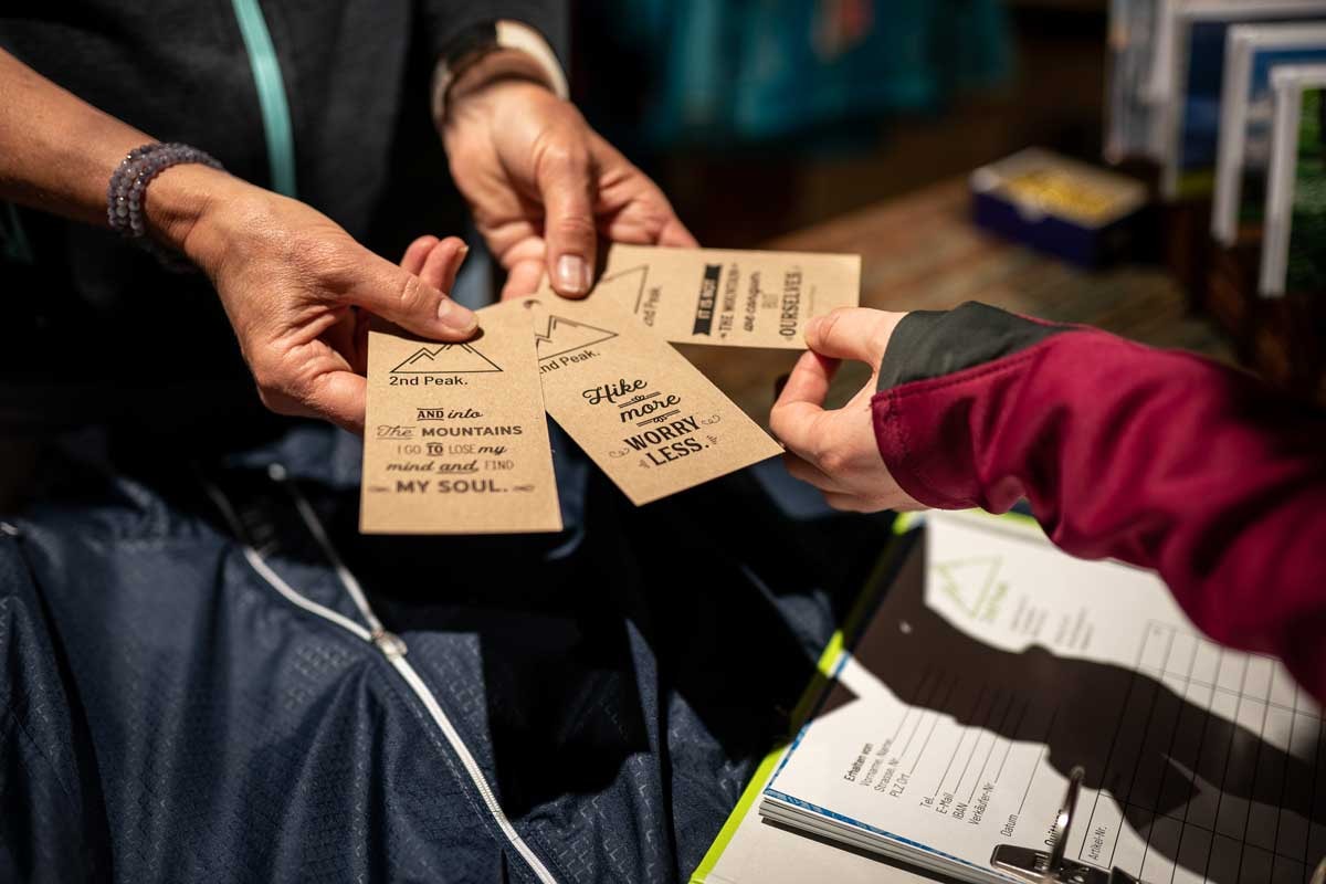 Eine kleine Auswahl des Sortiments im Laden, das Secondhand-Outdoorkleidung für Damen, Herren und Kinder umfasst sowie Schuhe, Ausrüstung und Firsthand-Kleidung der Marken Trollkids und Ternua, kann über die 2nd Peak-Website eingesehen werden. Maximal drei Artikel können dann telefonisch für bis zu 24 Stunden reserviert werden, um sicherzustellen, dass sie nicht vergriffen sind, wenn Interessierte es in den Laden schaffen.