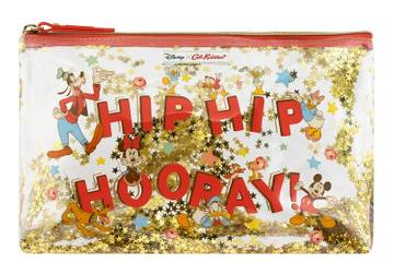 Die Kollektion umfasst vier spezielle Motive, die auf Taschen, Accessoires und Heimartikeln wie Bechern, Schneekugeln und Christbaumkugeln zu sehen sind. Im Mittelpunkt steht die „Hooray“-Rose, ein festliches, Pop-Art-inspiriertes Design, das Mickey Mouse mit Sprechblasen Blumen und Sternchen vor einem roten Pünktchenmuster zeigt.