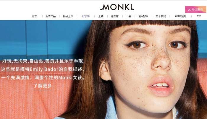 Die zu H&M gehörende Marke eröffnete ihr erstes Ladenkonzept in China im Jahr 2010 und hat seitdem dort rasant expandiert. Inzwischen betreibt die Marke 37 Monki-Boutiquen in China und Hongkong.