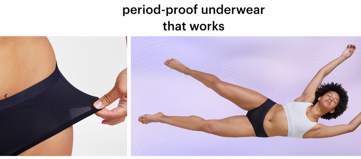 Die Lösung: Die Unterwäsche von Thinx, die an einem Ende des Balkens angebracht ist. „Befreie dich, begrüße deine Befreiung, sicher“ heißt es dort und „Wir helfen dir“. Und so funktioniert es: „Unsere waschbaren, wiederverwendbaren Slips nehmen dein Menstruationsblut auf und sind eine nachhaltigere Lösung als Einwegprodukte. Abhängig vom Blutfluss (leicht, mittel, schwer) kann Thinx Binden, Tampons, Slipeinlagen und Menstruationstassen ersetzen oder zusammen mit Tampons und Menstruationstassen als zusätzlicher Schutz getragen werden“, heißt es auf der Website des Unternehmens (shethinx.com).