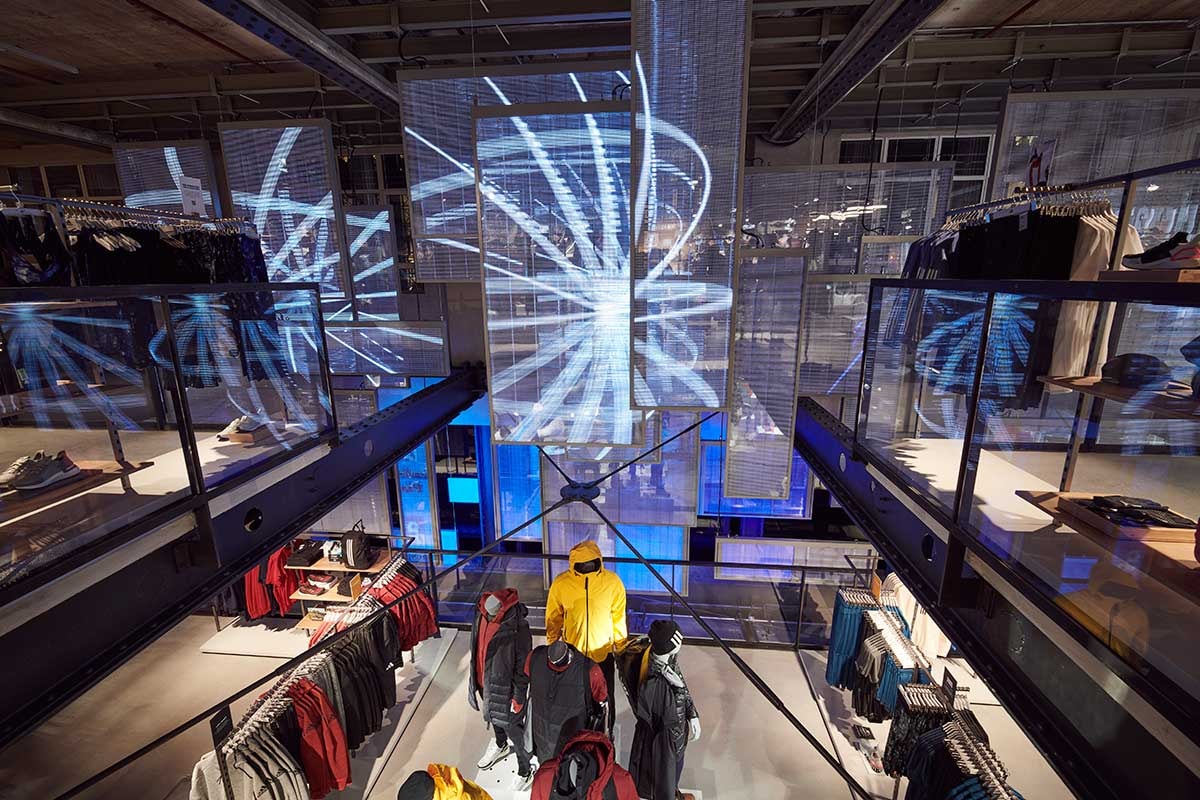 Adidas setzt sich für den Digital Store ein. Der Londoner Store erhielt ein Makeover und die Marke nannte ihn in den "most digital store ever". Es gibt mehr als hundert digitale Touchpoints, wie beispielsweise interaktive Spiegel in den Umkleidekabinen, LED-Screens und eine Hypewall. Über die interaktiven Spiegel können die Kunden Informationen über das Kleidungsstück anfordern sowie eine Anfrage nach einer anderen Größe stellen, die an einen der Mitarbeiter geschickt wird.