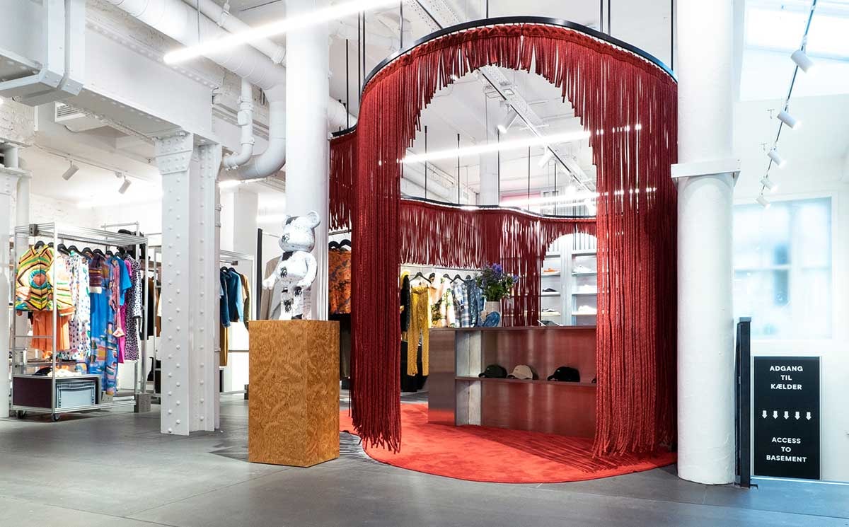 Die dänische Marke Wood Wood eröffnete Ende des Jahres ihren ersten internationalen Store. Die Marke hatte bereits fünf eigene Stores in ihrem Heimatland, wählte aber für ihr internationales Debüt London. Der Store wurde von Spacon & X entworfen und lässt sich von der Streetwear-Kultur inspirieren. Der Store ist voller verspielter Features, wie beispielsweise einer Trennwand aus Fransen oder Ziegelsteinen auf Metallstangen. Auf der großen Fläche entstehen so kleine, intime Räume. Allein schon wegen dieses Storekonzepts ist der Wood Wood Store einen Besuch wert.
