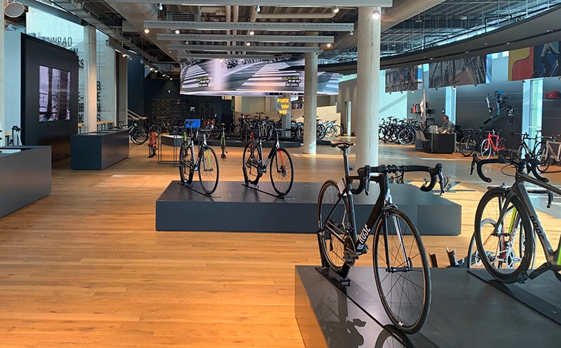 Rose Bikes wurde 1907 gegründet und beschäftigt insgesamt 450 Mitarbeiter, davon 85 auf den Flächen. Der Store vertreibt Labels wie Fahrradbekleidung, Fahrräder und Zubehör.