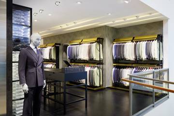 Auf einer Verkaufsfläche von 100 Quadratmetern präsentiert die Marke ein umfassendes Sortiment an Anzügen, Hemden, Hosen, Schuhen und Accessoires für Herren. Darüber hinaus bietet eine Schneiderstation vor Ort die Möglichkeit, Anpassungen und Änderungen an Kleidungsstücken unmittelbar vorzunehmen.