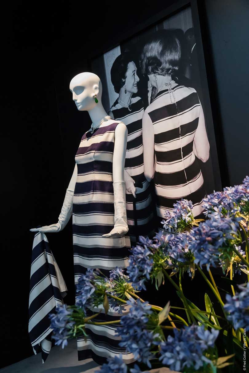 Neben Jackie Kennedy’s besticktem Kleid und OPpernmantel, denn sie beim ersten Frankreich-Besuch Ihres Mannes als trug und das Outfit der Duchess of Windsor, das sie bei der Beerdigung ihres Mannes anhatte, sowie Stücke von Countess Isabelle de Borchgrave d'Altena, der Duchess of Cadaval, und der Marquesa de Llanzol.