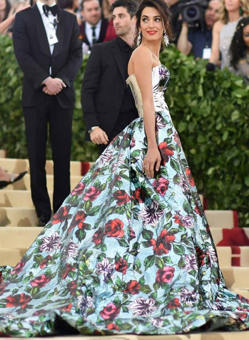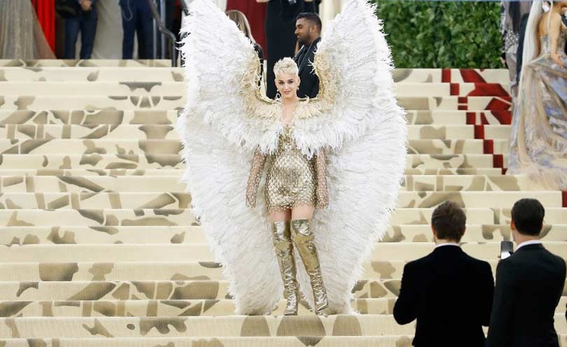 Mit ihren weit über ihren Kopf hinausragenden Engelsflügeln bekam Sängerin Katy Perry leichte logistische Probleme. Sie konnte sich nur seitwärts durch die Tür bewegen. Die meterlange Schleppe ihres glitzernden Outfits machte auch Co-Gastgeberin Amal Clooney zu schaffen, die das Event gemeinsam mit «Vogue»-Herausgeberin Anna Wintour ausrichtete. Ehemann George Clooney schien wenig Mitleid zu haben: Auf die Frage hin, wo die Zwillinge des Paares heute Abend seien witzelte er, die Kleinen steckten unter der Schleppe.