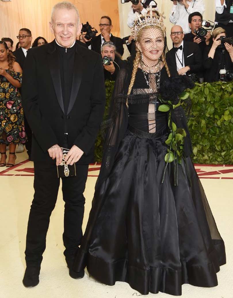 Superstar Madonna durfte bei der Mode-Party des Jahres mit diesem Motto natürlich nicht fehlen. Die nach der Mutter Jesu benannte Sängerin erregte schon vor fast 30 Jahren mit «Like A Prayer» (Wie ein Gebet) die Gemüter. In New York beschwor sie ihre katholische Herkunft und erschien in strengem Schwarz mit Netz-Schleier über ihrer blonden Flechtfrisur. Madonna wäre allerdings nicht Madonna, ließe unter dem Schleier nicht ein kreuzförmiger Netz-Einsatz tief blicken. Eine Tiara aus Kreuzen machte die düstere Kirchen-Queen á la Jean-Paul Gaultier komplett.