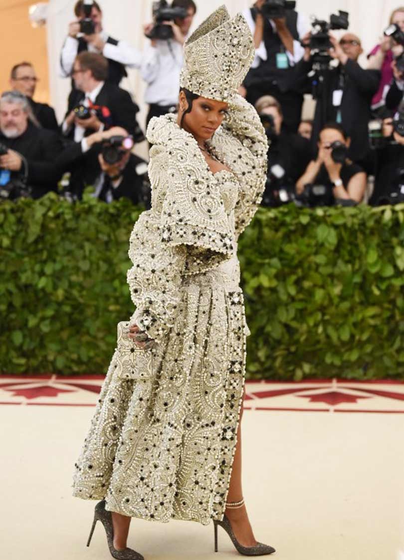 Bei «Game of Thrones»-Star Emilia Clarke rankten sich goldene Stickereien um einen geflügelten Barockengel, Ariana Grande trug ein Kleid bedruckt mit Motiven aus der Sixtinischen Kapelle. Sängerin Zendaya hingegen ließ sich von der Jungfrau von Orleans inspirieren und erschien in Rüstung und Kettenhemd. Vergleichsweise schlicht prangten da zwei große goldene Kreuze auf dem hautengen gold-metallic Kleid von Kim Kardashian.