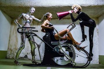 Newtons Inszenierungen sind dabei typischerweise von kuriosen und teils übertriebenen Kontrasten geprägt. So zeigt die Schau zum Beispiel eine Werbekampagne für den Wäschehersteller Wolford, bei der Models eng anliegende Bodys und feine Kniestrümpfe tragen und dabei vor der rauen Küste Monacos stehen. (dpa)