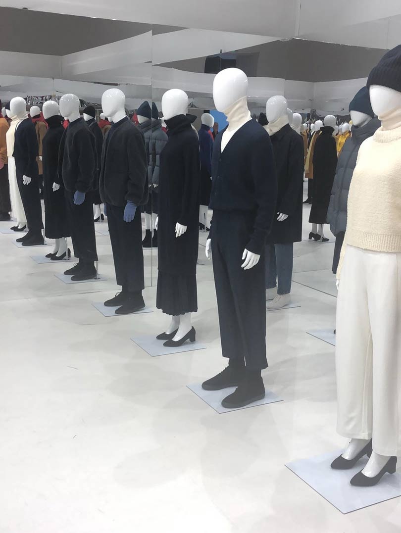 Ein Teil der Ausstellung konzentriert sich auf die "Wholegarment"-Technologie, die mit den japanischen Shima Seiki Advanced Strickmaschinen nahtfreie Strickwaren mit dreidimensionalen Silhouetten gestaltet. Diese Installation gibt den Besuchern einen Einblick in die Zukunft der Uniqlo-Strickstoffe. Dieser Bereich verfügt auch über vier Bildschirme, die von innen heraus zeigen, wie die Fabrik der Marke aussieht, so dass die Besucher sie virtuell besuchen können.
