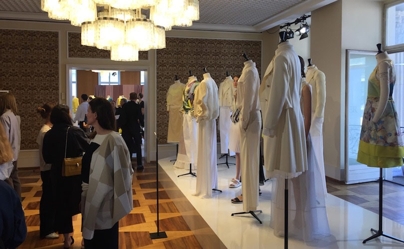 Wieder einmal bewies die Präsentation, dass Mode nicht unbedingt einen Laufsteg braucht. Natürlich fehlt die gewisse Theatralik und die Möglichkeit, Kleider in Bewegung zu sehen – aber viele Details lassen sich auf Puppen, ohne die Distanz, die der Catwalk schafft, sogar besser entdecken. Gezeigt wurden außerdem nicht die kompletten Kollektionen, sondern bewusst ausgewählte prägnante Outfits, die einen konzentrierte Einblick in die Visionen der Designer boten. Und wenn trotzdem noch Fragen offen blieben, standen die selbst neben ihren Kreationen parat, um den Einkäufern und Journalisten Rede und Antwort zu stehen.