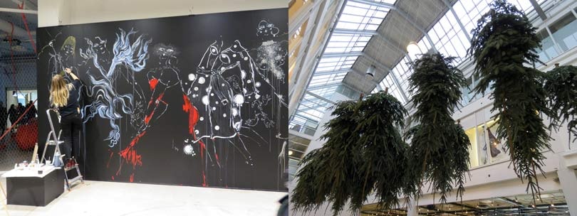Die Messe CIFF in Kopenhagen präsentierte für die Herbst-/ Wintersaison erneut ein internationales Sortiment an Damen- und Herrenbekleidung sowie Accessoires. Bei der Ankunft wurden die Gäste von einem Ausstellungsraum mit multimedialen Markenkollaborationen, Kunstinstallationen und Live-Workshops empfangen, der die Besucher in eine kreative Erlebniswelt eintauchen ließ. Die Messehallen wurden nach Mode-Genre unterteilt, wobei jeder Bereich so gestaltet wurde, dass die Markenkategorien wie Urban, Lab und Sleek ansprechend repräsentiert wurden. Im Herzen der Ausstellungsfläche des Bella Centers stand eine Installation, die von der dänischen Landschaft inspiriert war: Eine dynamische Skulptur bestehend aus riesigen Nadelbäumen, die an der Decke aufgehängt und in den verspiegelten Böden reflektiert wurden.