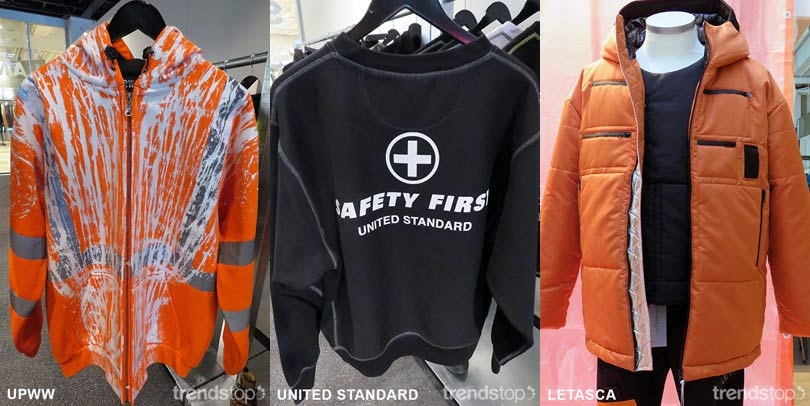 Unisex-Bekleidung wird im Herbst/Winter 18 von Sicherheitsuniformen und Baustellengrafiken inspiriert. Die wichtigsten Designelemente sind dabei reflektierende Jacken und Sicherheitsschilder in den Farben Orange, Weiß und Schwarz, die durch kontrastierende Details und Performance-Beschläge ergänzt werden. Diese neue Variante des Utility-Trends kommt bei Outdoor-Bekleidung, technischer Sportbekleidung und trendorientierten Athleisure-Produkten zum Einsatz, bei denen Sichtbarkeit eine Notwendigkeit oder einfach eine spannende Stilaussage bildet.