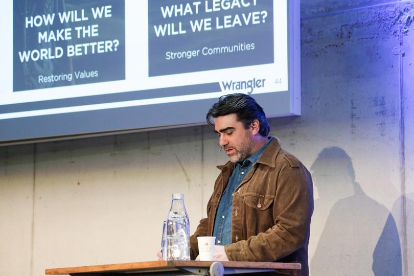 "Wir haben einiges in der Pipeline, aber wir konzentrieren uns nicht nur auf das, was gut im Marketing klingt, sondern auch auf das, was eine reale Wirkung hat", sagte Roian Atwood, Head of Sustainability bei Wrangler. Er hatte gerade einen Vortrag über nachhaltige Praktiken in der Denim-Stoffproduktion auf der Kingpins Transformers Veranstaltung gehalten.
