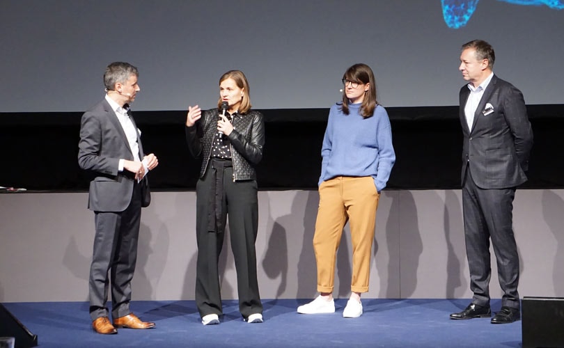 “Einfach umstellen auf 3D, das wird der Zeit nicht mehr gerecht. Was sich ganz klar zeigt, ist dass sich die Produktentwicklung komplett verändern muss”, sagt Birgit Wiech, Senior Head of Product Excellence Woman bei Hugo Boss, während der Präsentation mit ihrer Kollegin. “Wir befinden uns in einem massiven Umbruch, wo wir auf Geschwindigkeit setzen müssen. Und unser Ziel ist es, diesen ganzen Prozess bis in den Store raus zu digitalisieren.”