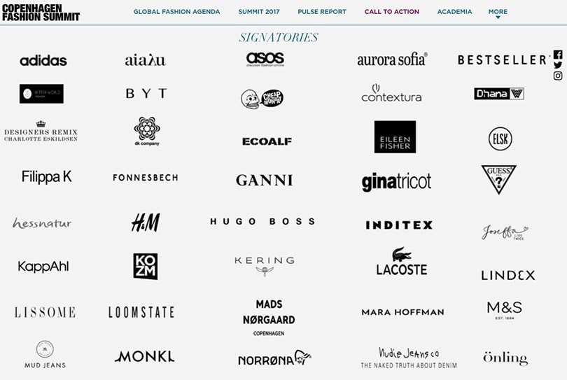 Der erste Schritt erfolgte auf dem Copenhagen Fashion Summit im Mai 2017, der weltweit größten Veranstaltung für Nachhaltigkeit in der Modewelt. Dort wurde der Aktionsaufruf der Global Fashion Agenda lanciert. Die führenden Unternehmen in der Modebranche verständigten sich darauf, auf ein nachhaltiges Kreislaufsystem hinzuarbeiten. Insgesamt 64 Unternehmen, die insgesamt 142 Marken vertreten (was etwa 7,5 Prozent der Branche entspricht) verpflichteten sich dazu, bis Ende 2017 eine zirkuläre Strategie für ihr eigenes Unternehmen zu entwickeln. Zu den Unterzeichnern gehören Unternehmen wie Adidas, Eileen Fisher, Hugo Boss, Reformation und VF Corp.
