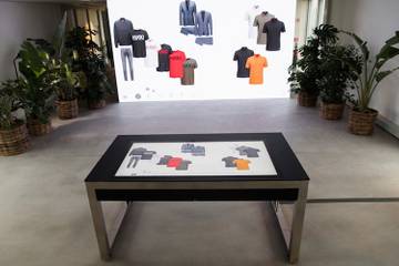 Für die vielfältigen Aufgaben, die der Showroom erfüllen soll, ließ Hugo Boss eigens eine spezielle Software entwickeln. Die kommt nun in Berlin in einer ziemlich puristischen Installation zum Einsatz: „Der ‚Digital Showroom‘ ähnelt mit seinem 65-Zoll Touchscreen äußerlich einem Tisch, im Innern kommt eine agile und innovative Software zum Einsatz, die eine komplette Kollektion anschaulich visualisiert, Farb- und Kombinationsoptionen aufzeigt und sogar eine direkte Oder der Kollektionsteile ermöglicht“, erläuterte das Unternehmen.