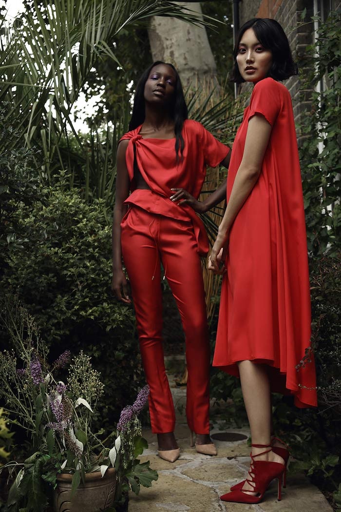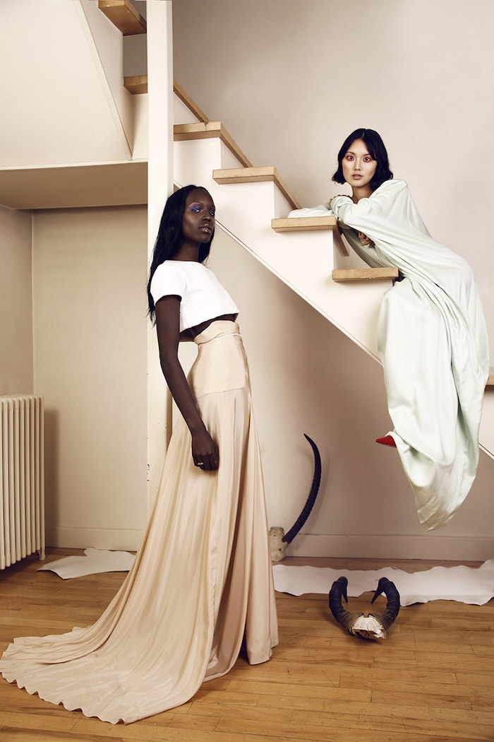 Ein weiterer, eindeutiger Einfluss zeigte sich in meiner letzten Frühjahr/Sommer Kollektion mit dem Titel ‚Tribe’. Ich entschloss mich in dieser Kollektion dazu, auf Reißverschlüsse zu verzichten. Alles war entweder drapiert oder geknotet. Dieses Konzept ging auf meine Stammeswurzeln zurück. Unsere typischen Gewänder sind geknotet. Ich dachte mir, dass das eine spannende Herangehensweise sein könnte, die mittlerweile zu meinem Erkennungsmerkmal geworden ist. Ich benutze keine Verschlussvarianten, die es nicht auch in meinem Dorf gibt.