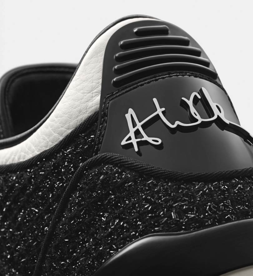 Die zweite Kreation, der AJIII SE AWOK, ist Wintours Version des Air Jordan 3 SE-Modells und ließ sich von den charakteristischen Tweed-Anzügen der Chefredakteurin inspirieren. Den Sneaker gibt es in Schwarz und Rot, und er trägt ebenfalls das „AWOK“-Kürzel, jedoch hinten an der Ferse.