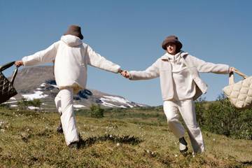 Die Kollektion wurde in einer schwedischen Landschaft aufgenommen, dem Heimatland des Unternehmens, und zeigt die Kleidungsstücke in der Umgebung, für die sie hergestellt wurden. Sie sind aus natürlichen und recycelten Materialien gemacht, darunter Polyestermischungen, die dem Tragenden sowohl Atmungsaktivität als auch Schutz bieten sollen.