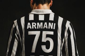 Juve holte dazu für seine Internet-Kanäle ein altes Trikot aus dem Jahr 1975 aus dem Schrank und versah es mit der Rückennummer 75 - das Jahr, in dem Armani seine erste eigene Kollektion herausgebracht hatte.