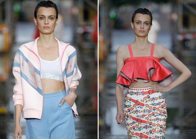 Der Lederriemen, einst das Thema ihrer noch sehr avantgardistischen Abschlusskollektion an der Berliner Modeschule Esmod, ist als Markenzeichen weiter allgegenwärtig: in seiner Urform, als geprägte Struktur, Applikation oder Print. Angereichert wurde das Repertoire diesmal um traditionelle russische Motive und großvolumige Volants, die nicht nur dekorative Funktion hatten, sondern abstrakte Silhouetten formten. Manche Entwürfe sind nahe an der Selbstparodie, viele aber in ihrer Originalität einfach überzeugend. Dass die Marke Hoermanseder inzwischen schon funktioniert wie internationale Weltmarken bewiesen neben den allgegenwärtigen Accessoires diesmal auch zahlreiche lässige Sportswear-Teile, die durch ein geschickt platziertes Riemenmotiv eindeutig dem Kosmos der Designerin zuzuordnen sind.