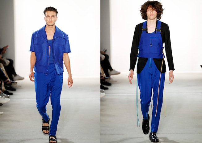 Männermode gab es in Berlin auch zu sehen. Im Vordergrund stand sie nicht, obwohl mit Ivanman wieder einmal ein Menswear-Label den Schauenreigen offiziell eröffnen durfte. Das zeigte eine solide, von klassischer Arbeitskleidung inspirierte Kollektion in Schwarz und kräftigem Blau. Ansonsten gab es zwar vereinzelt Herrenoutfits auf den Laufstegen zu sehen, aber insgesamt dominierte Damenmode. Menswear findet während der Berliner Modewoche vornehmlich abseits der Catwalks statt – vor allem auf den Messen Seek, Bright und Selvedge Run. Doch da geht es weniger um künstlerischen Anspruch als um coole Marken, um Street- und Casualwear, Denim oder Handwerkskunst. Avantgardistische Männermode mit klarer künstlerischer Handschrift fristet in der Hauptstadt weiter ein Schattendasein. Aber was das angeht, reflektiert die Modewoche immerhin das Berliner Straßenbild.