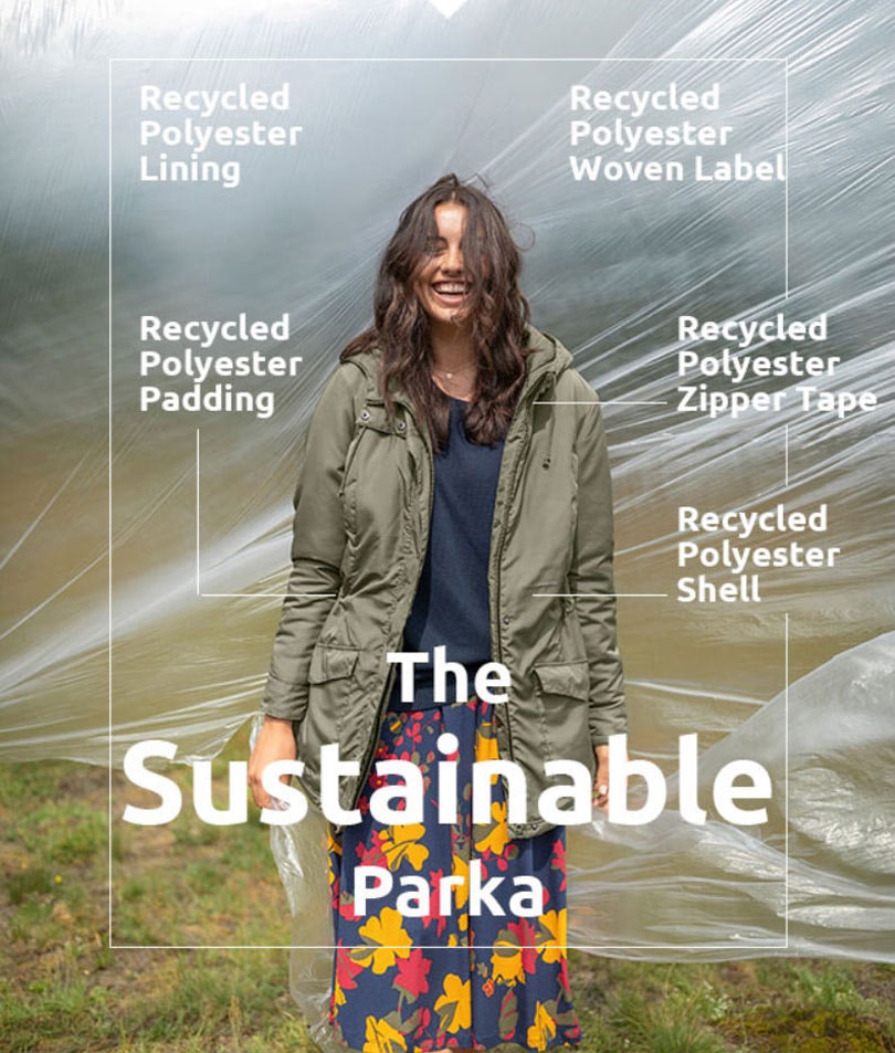 Das Highlight der zweiten Auflage ist ein Parka aus recyceltem Polyester, in dem insgesamt 25 PET-Flaschen (à 0,5 Liter) verarbeitet wurden. Zur Verpackung der Artikel verwendet Bonprix wie in der ersten Sustainable Collection Polybags aus 100 Prozent recyceltem Kunststoff.