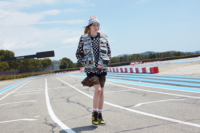 Die auf Instagram und celine.com gestreamte Modenschau wurde auf einer Rennbahn in der Nähe von Marseille gedreht. Einige der Models waren bei dem ‘Rennen’ mit passenden Helmen ausgestattet. Gegen Ende wurden die Models immer schneller – wie unsere schnelllebige Welt – bis sie zu Lichtstrahlen wurden, die über die Bahn rasten.