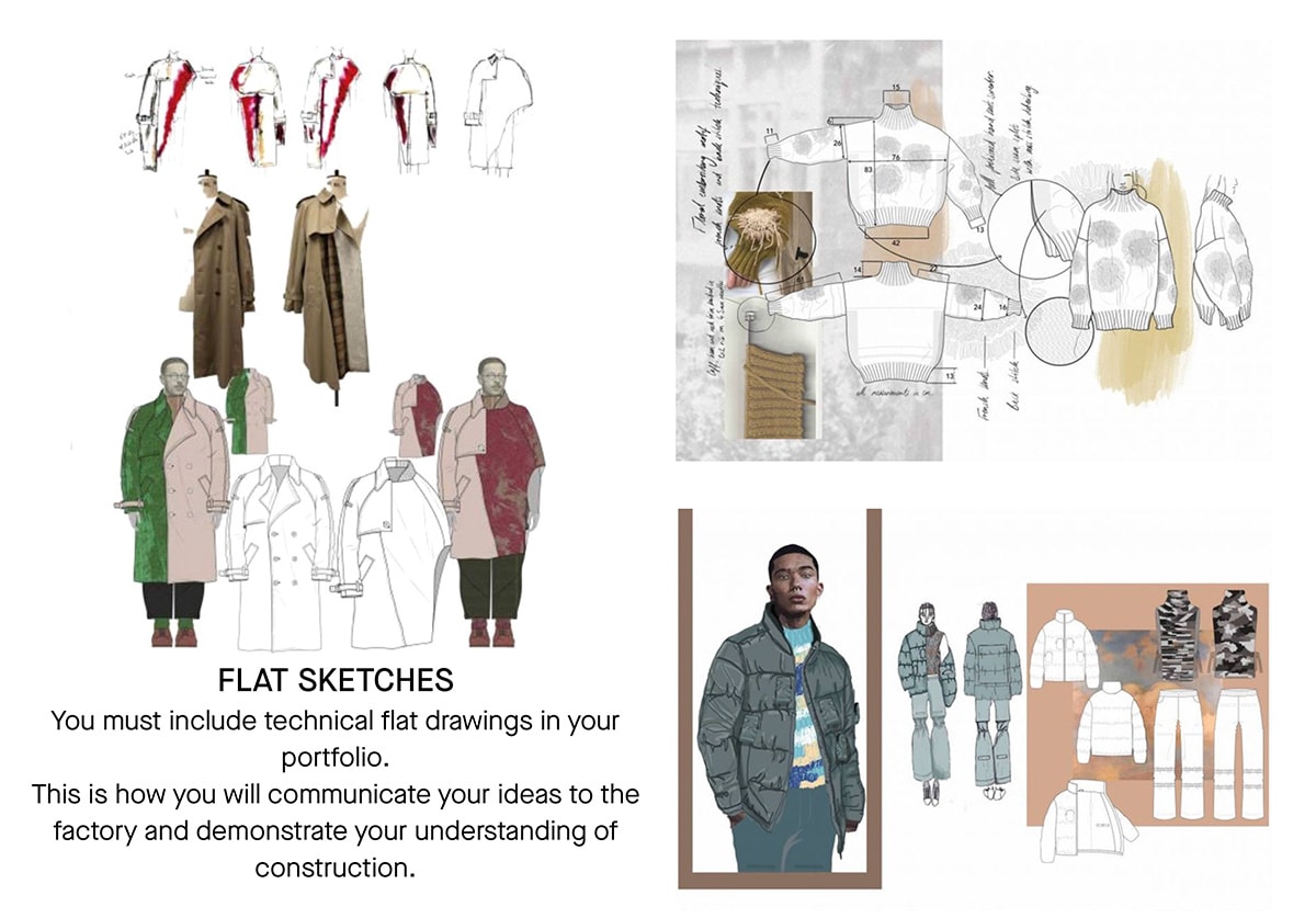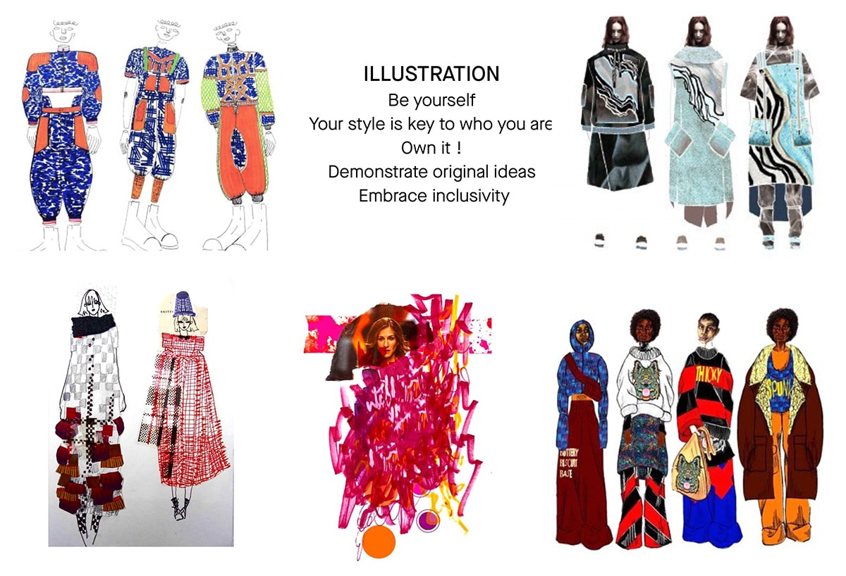 Illustrationen sind nach Jahrzehnten des Darbens wieder sehr gefragt. Wenn das Zeichnen oder Malen Ihre persönliche Stärke ist, dann zeigen Sie das mit Selbstvertrauen. Illustrationen sind eine willkommene Abwechslung für Interviewer, die vielleicht eher daran gewöhnt sind, Excel-Tabellen, technische Zeichnungen und Zahlenkolonnen anzustarren, ein Stilmittel, das Fantasie und Romantik inspiriert. Ob es Handzeichnungen oder digitale Illustrationen sind, die Art und Weise, wie Sie illustrieren, muss Ihre Kollektionen, Inspirationen und Zielgruppe widerspiegeln.