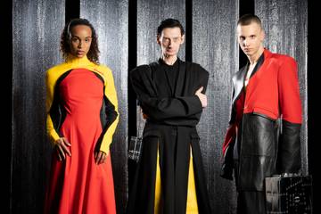 „Die DHL-Arbeitskleidung mit ihren charakteristischen Farben ist mir seit meiner Kindheit vertraut – gelbe Ärmel und roter Torso mit schwarzen seitlichen Einsätzen“, so der Haderlump-Designer Johann Ehrhardt. Diese Designer-Charakteristiken verband der Modeschöpfer mit Elementen seiner eigenen Marke wie der Verwendung von Leder und üppigen Schnittformen.