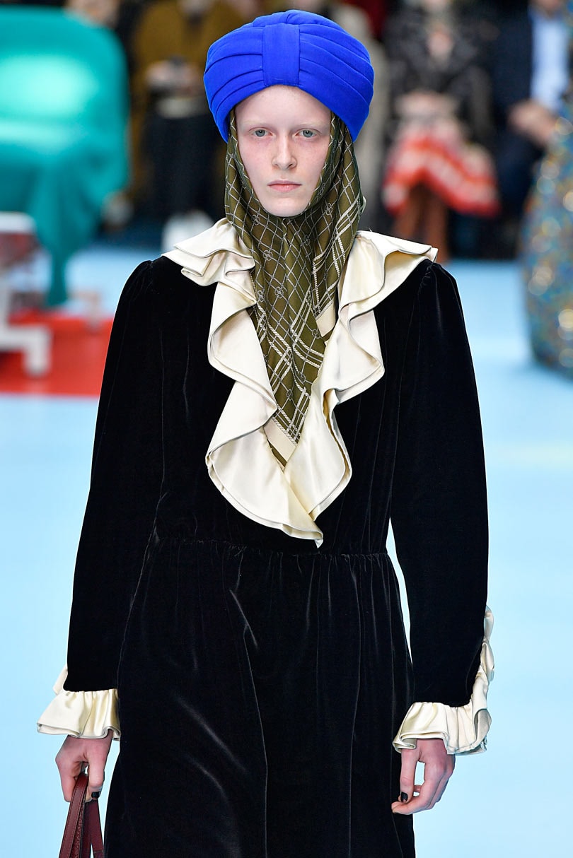 Marc Jacobs hatte nur wenige Wochen vor der Gucci-Show auf seinem Catwalk während der New York Fashion Week Modelle präsentiert, deren Köpfe unter breitkrempigen Hüten so umwickelt waren, dass sie viele Beobachter an Hijabs erinnerten - ein Wort, das allerdings in den Notizen zu seiner Inspiration nicht vorkam. Nach seinen afrikanischen Kopfbedeckungen der letzten Schau und den weißen Mädchen, die in der Saison zuvor Dreadlocks trugen, könnte man schließen, dass Marc Jacobs Genugtuung dabei empfindet, immer wieder mit unsensiblen Style-Choices die Aufmerksamkeit auf sich zu ziehen.