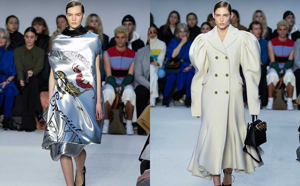 Texturen und Volumina sind der „neue Chic“, sagte JW Anderson. Für seine neue Saison wollte er „etwas Optimistisches“. Als guter Ire ließ er sich für die Farben und das Design bestimmter Kleider von dem berühmten Guinness-Bier inspirieren. „Die Guinness-Typografie hat etwas Schönes, es enthält Gold, Schwarz, einen kleinen Hauch von Silber und Burgunder“, erklärt er.