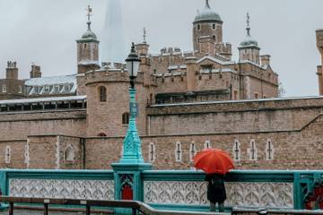 Grell und extravagant heben sich die Designs von der gräulichen, steinernen Kulisse des Tower of London ab: Zu Ehren des Thronjubiläums der Queen haben sich berühmte Designerinnen und Designer wie Victoria Beckham oder Richard Quinn besondere Kreationen ausgedacht.