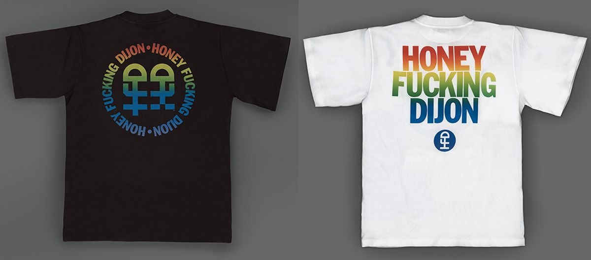 Honey Fucking Dijon ist das Label der in Berlin ansässigen amerikanischen Discjockey Honey Dijon. Die erste Kollektion war klein: eine Serie von T-Shirts und Lederwaren, inspiriert von Dijons Metier: eine Schallplatten-Tasche, eine Tasche für USB-Sticks. Der Blickfang ist das HFD-Logo von Dijon, das vom britischen Art Director und Popstar Trevor Jackson entworfen wurde. Ziel ist es, die Kollektion jede Saison zu erweitern. Die Brieftaschen und anderes Zubehör werden in den spanischen Werkstätten hergestellt, mit denen Comme des Garçons seit Jahren zusammenarbeitet. „Ich war ein Fan", sagt Joffe in einer Mitteilung. „Ich traf sie, als sie sich auf unserer Afterparty nach dem Met-Ball auflegte. Sie steckt Herz und Seele in ihre Arbeit, ist künstlerisch und authentisch".